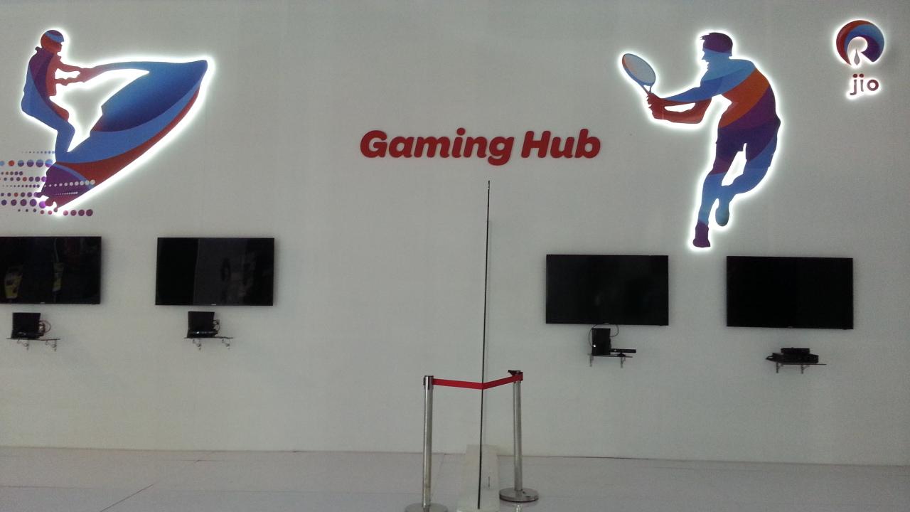While other companies have stalls inside pavilions, Reliance has its own pavilion at Vibrant Gujarat Global Tradw Show. Reliance Pavilion mainly features Jio which is its upcoming product. Gaming, e-payment including e-transaction through mobile phone, video conferencing, TV programmes watching on the go are some of the features of Reliance Jio. The photographs attached with this article will give more clarity on Jio’s offerings.